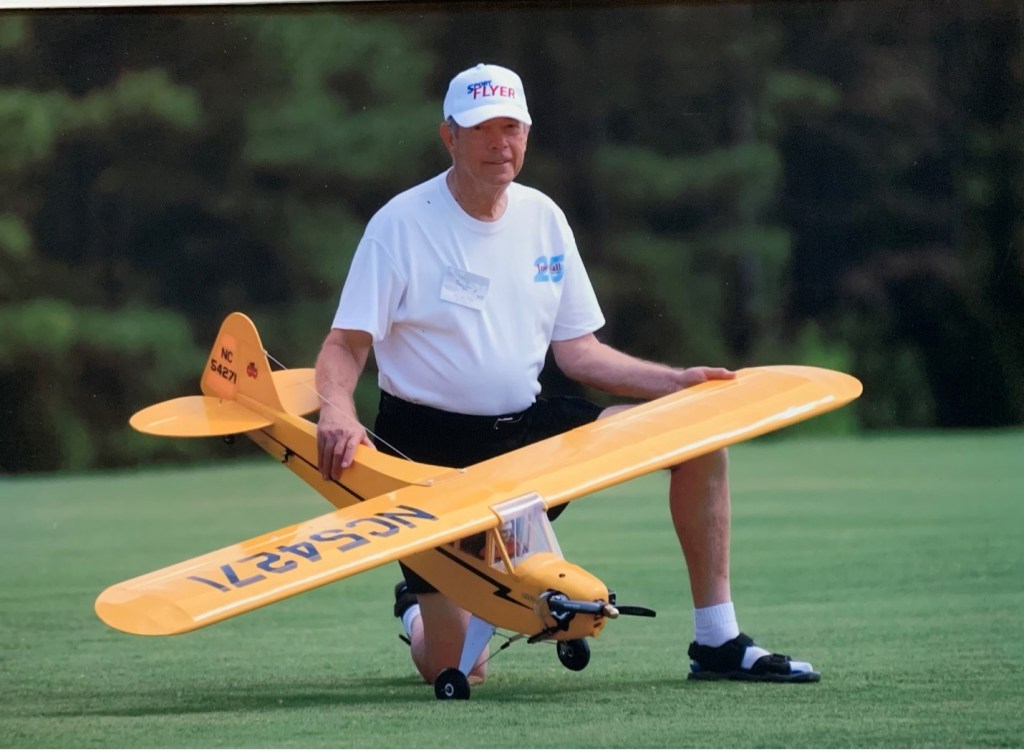 Of course, I just had to have a ¼ scale Piper Cub in my stable of model R/C airplanes, as a constant reminder of that very first little hard-wood Piper Cub I built when I was eight years old. This airplane is a model of the famous Piper J-3 Cub that was designed in the 1930s and has been one of the basic trainers used by people all over the world to learn how to fly. My model uses a .91 CID four-stroke engine and looks, sounds, and flies very realistic in the air and on the ground. Great fun!