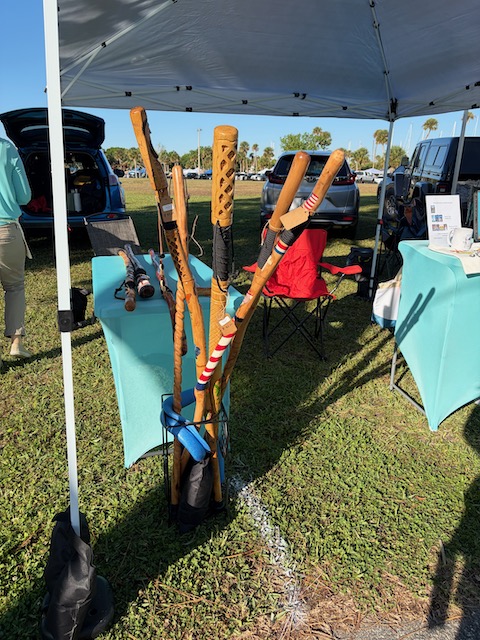Our town has a spring and fall craft fair. This is the third year our daughter has participated. My husband has taken up carving walking sticks.and this year he joined our daughter to sell them.
