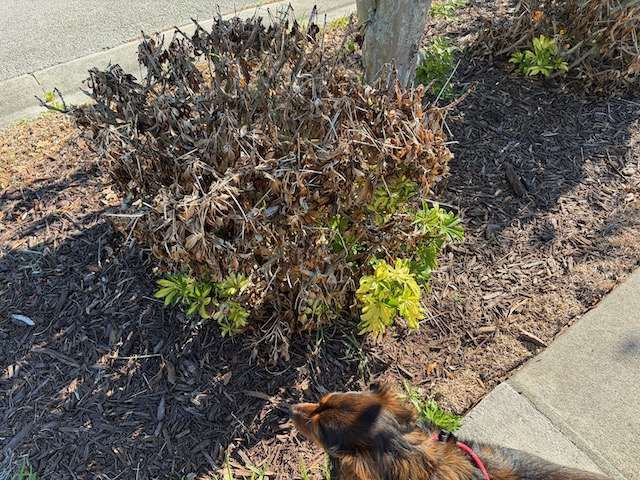 The amaryllis looked dreadful and the browning continued for weeks. Then one day in late March the bulbs put out new green leaves. The plants are family heirlooms, brought to Florida when my parents moved to Florida in the 1950s. I had been feeling sad that they might be gone forever.( I forgot to take a picture of the new growth.)