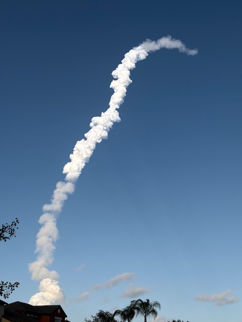 As the count down marched toward 5 minutes and counting, several neighbors walked outside to watch as I did, from our front yards. It was a flawless day and a flawless launch. My husband, recuperating from surgery said the launch rocked the windows. There’s nothing like the rumble that penetrates the body.