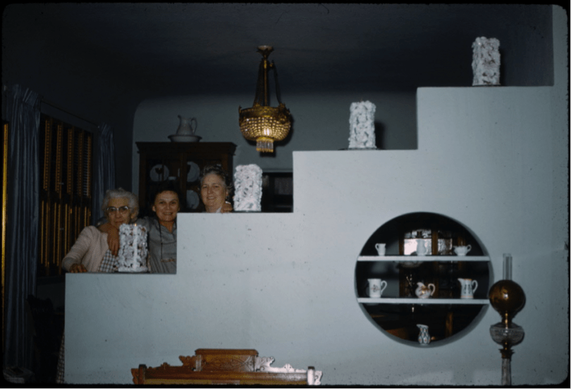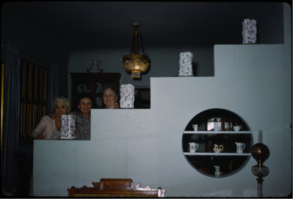 The stair-step divider between the dining room and the living room – Christmas candles made by Jessie
