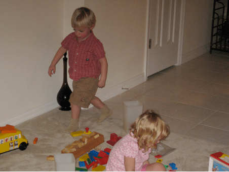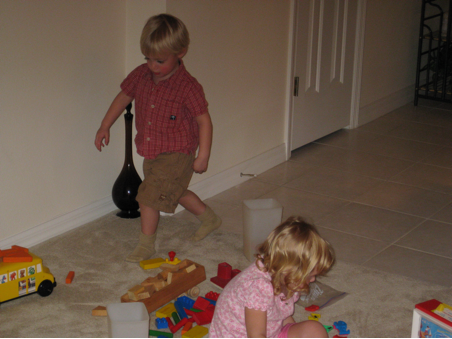 Connor and Hannah with ALL the toys!