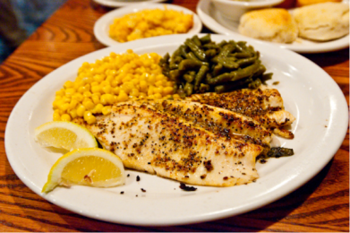 Dinner tonight was another delicious (leftover) dinner of Grilled Rainbow Trout with corn, green beans and one of their Cracker Barrel famous buttermilk biscuits with butter and honey for dessert. Yuuum!! Again.