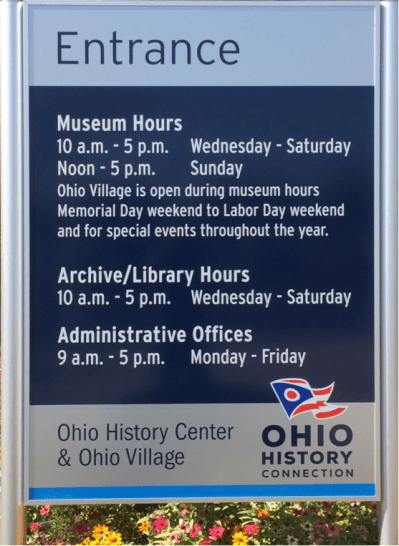 Now I headed into Columbus to visit the Ohio Village & Museum, at the Ohio History Center. The portion of the Center that housed the museum was a massive edifice, and would take the average person hours to go through it. Once I got a look at a museum layout map, at the visitor’s desk, I decided not to spend the time there and move on to the next museum.