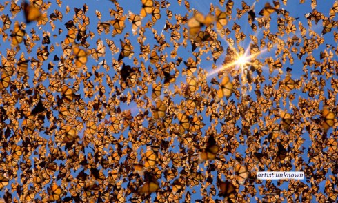 Similar to the migrating birds, the monarch butterflies use the clear advantage of updrafts of warm air, called “thermals” and glide as they migrate, to preserve the energy required for flapping their wings all the way through the long 2500 mile voyage from the Great Lakes in Canada to the warm Central Mexican Oyamel fir forests in the Michoacan Hills. They rest there through winter and then complete their migration Northwards in search of milkweed plants in the Eastern United States.