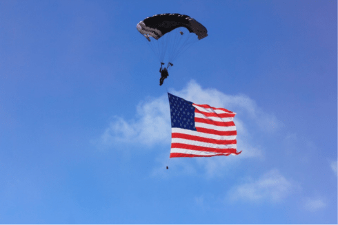 Since this airshow was being held in a location where there weren’t any vacant surrounding areas where pyrotechnics could be used, it limited the activities of the show somewhat. They started the show with parachute jumper who came down with the American flag while the National Anthem played.