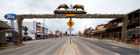 Before I left Afton, I wanted to see and photograph what is advertised to be the World’s Largest Elk Horn Arch. The arch is 18 feet high and 75 feet wide, and is said to contain over3000 elk antlers. Sure enough, there it was, stretching across US-89 in downtown Afton, with a pair of elk sparing on top. Wow! That took a lot of elk Horns to build! There must have been a lot of elk roaming around these parts in the early days, as I have seen all kinds of elk Horn furniture in museums on this trip.