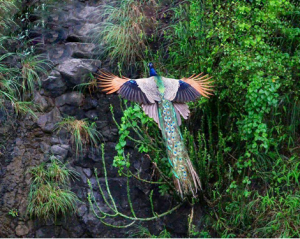 I asked Brian if he had ever seen a peacock in flight, and he said no. I had recently seen a collection of pictures of peacocks in flight. Here are a few of them. They are truly amazing! I thought that, with that long tail, either that they could not fly, or were flightless birds. Wrong on both counts. I searched Google and found these: