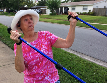 As I walked through our subdivision a big German Shepherd ran at me from across the street. He barked as if it were his job to protect the house he’d come from. But I’d never seen him before and wondered if he had strayed off or been left abandoned. In my terror, I thought I might raise my trekking poles to fend him off, but right away I realized that wasn’t an option. He’d just mow me down even if he ran into one of them.