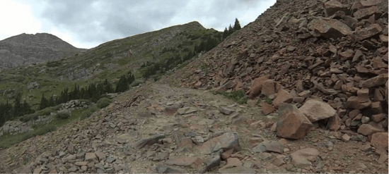 This is part of the 9.6-mile road to Hermit Dam. Nowadays it is considered one of the most dangerous roads in America and one of the ten highest in Colorado. The road becomes a trail before you get to the lake, so you must get out of your four-wheeled vehicle and walk. No horses are allowed on the road or on the trail. I have a bit of news about that. Tell you later.
