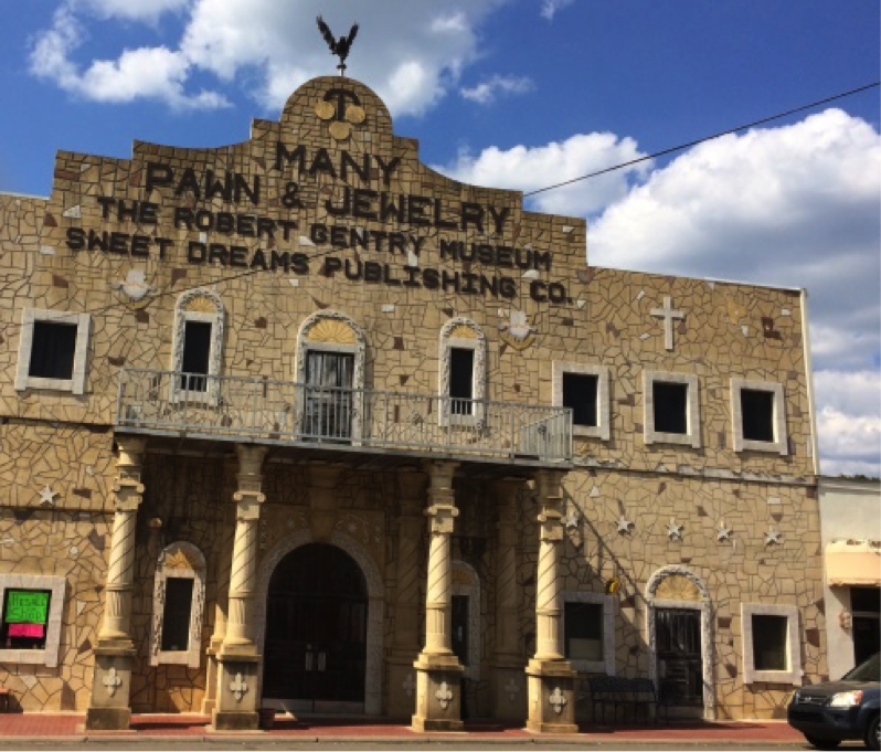 After I said my goodbyes to cousins Danny and Tracy, I drove back into Many to check out The Robert Gentry Museum, there on San Antonio Avenue. I had seen this museum as I first drove into Many, and hoped I had time now to visit before they closed. But I found out the museum had closed and all that was left in the building was a pawn shop.