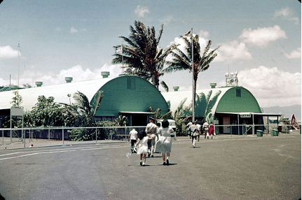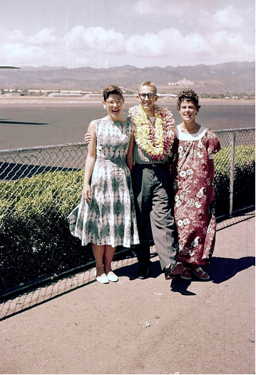 The next day we flew out on a DC7 with four old propeller engines. We stopped in Wake Island to refuel. As we were landing, I could see the ocean white caps under the wing. We used nearly all the runway to land. After Wake Island, we flew to Hickam AFB in Hawaii.