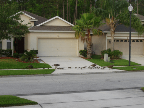 All that to say that, we have a lot of diverse animals that frequent our housing development. We frequently see turkeys in the neighborhood, usually four or five in a group, and either all males or all females.
