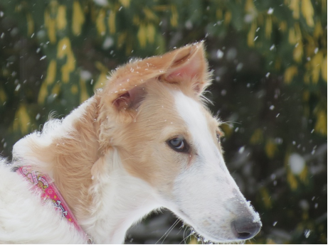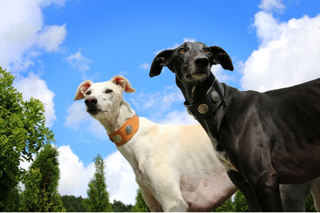 The man said that all of the greyhounds were rescue dogs, from the racing circuit. The dog who was hanging back had been mistreated, and was having a difficult time trusting humans.
