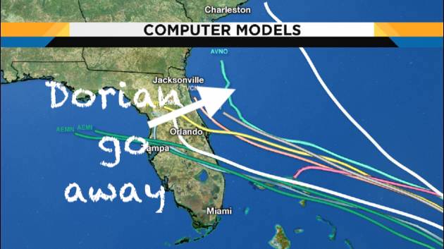 I am not in the mood for hurricane Dorian this weekend. I have plans and I am offended that a hurricane would dare to interfere with my right to have plans. Well, I am putting my foot down. The people who create these models need to change this.