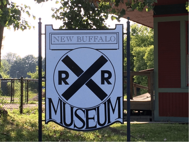 I was sorry to miss visiting the New Buffalo Railroad museum located in New Buffalo, MI. This small museum was closed, but their website tells me that the museum is housed in a replica of the original 1920s Pere Marquette depot located on the historic New Buffalo rail yard site. Three of the original 16-stall roundhouse and coal tower are an interesting part of the museum. Displays include restored WWII Pullman Troop Sleeper Car & a C&O Chessie Blue Box Car.