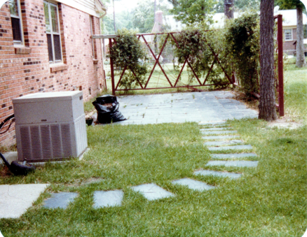 In the back yard, there was a patio made up of slate sections. There was a trellis at one end, and a big tree at the other. Someone had installed a pull-across line that could be used to hang clothes to dry. I love the smell of sheets dried in the air, and so did that frequently.