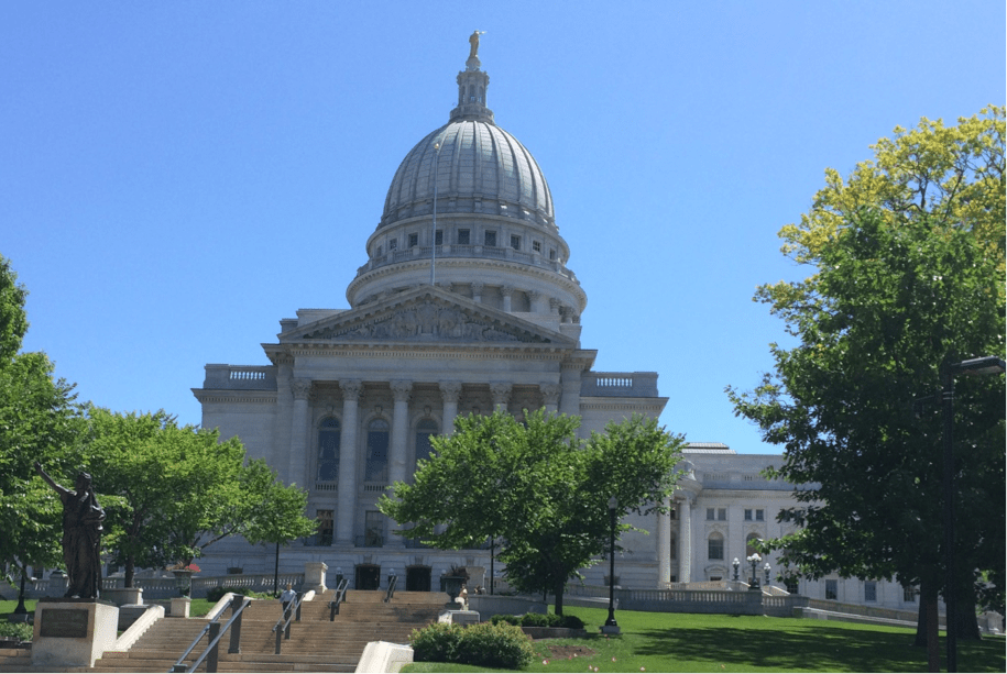 As I headed for my next stop, I passed the Wisconsin State Capital there in Madison, and stopped long enough to take a photo of that beautiful structure.  Wikipedia tells me that this Wisconsin Capital Building is the 5th and largest Capital Building to be built and used by the Wisconsin State Government since the first Territorial Legislature convened in Belmont,  Wisconsin Territory in 1836.