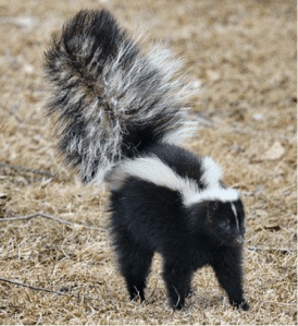 That day the boys came running into the house. My son yelled, “Mom, Mom.” I looked at the other boy. His eyeballs seemed to quiver. The big dog had come in too, somewhat subdued. They didn’t have to tell me what they were carrying on about; my nose told me. SKUNK! They knew to stay clear of that black and white kitty, but there he was stuck in a steel trap. I had to see if there was anything we could do to free poor Pepe Le Pew. We didn’t want to touch the trap, so we found a big heavy stick and pried the trap open with it. The skunk never did rise to his front legs and spray us; he just sauntered away.