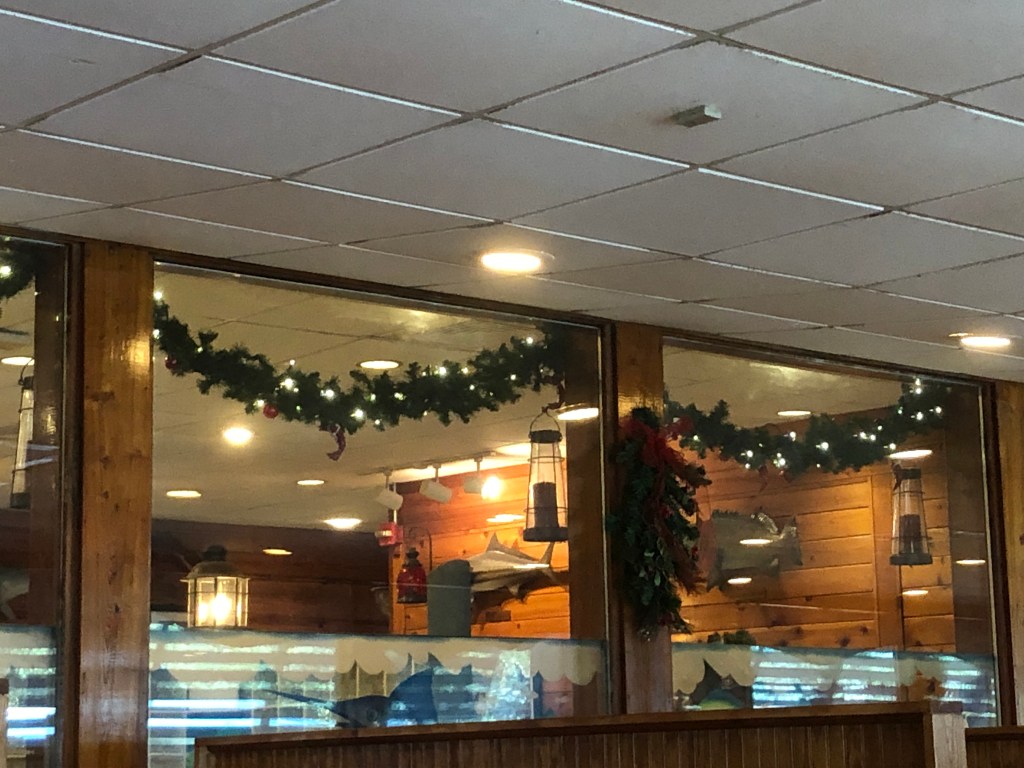 My husband took me out to lunch this week for my birthday. A very delayed celebration of my August birthday. To my surprise, the Seafood restaurant was decorated for Christmas!