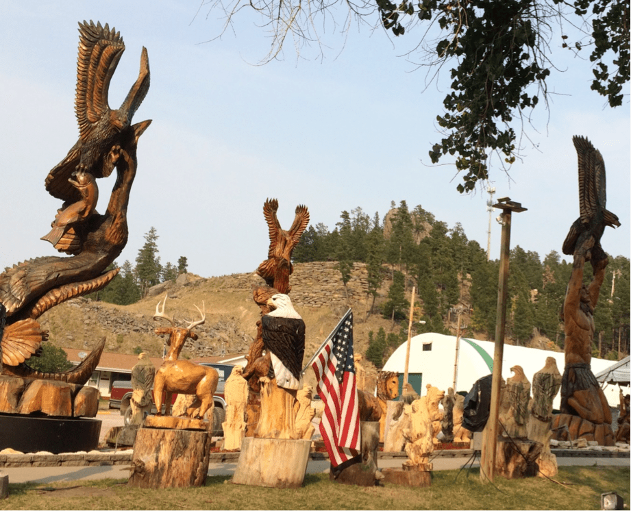 As I was leaving Keystone I drove past Dahl’s Chainsaw Art schulper garden and just had to stop and take a photo or two. This guy is amazing! Jarrett Dahl has a huge display of chainsaw art pieces of every size and discription lining Iron Mountain Road (US-16A). He or one of his team are constantly at work on a new design that you can watch take shape. You can even request your own design and watch it being carved (for the right price). Jarrett says his specialties are bears and eagles.