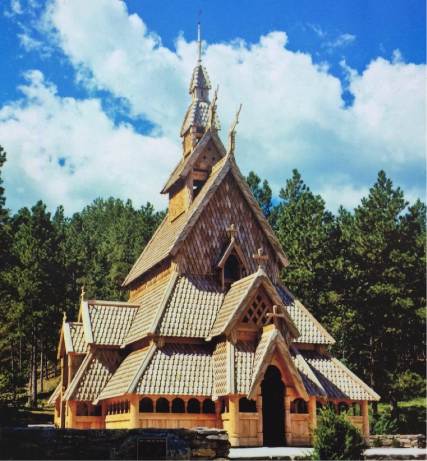 On the way to the motel in Rapid City I stopped to take a look at the Chapel on the Hill located just south of SD-44 in the Canon Lake Park area. The chapel has an amazing story behind it. Built in 1969 by Anton A. Dahl, the chapel is an exact reproduction of the famous Borgund Stavkirke in Laerdal, Norway. A museum on the property is housed in an authentic 1800s Scandinavian log cabin that displays artifacts representing typical Nordic lifestyle of that time period.