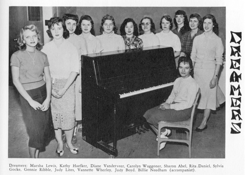 Billie – I THINK you accompanied the Dreamers all three years. However, I cannot find any mention of Dreamers in my 1957 yearbook. There is a picture of the Dreamers in the 1958 and 1959 book, but not the 1957. Amazing! Such fun memories, hmmm?