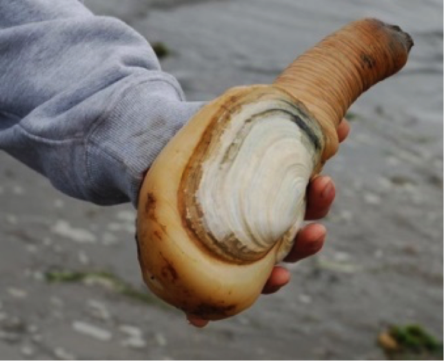 I was amazed at the tide levels in the Port Townsend Bay area. The difference between Low Tide and High Tide was over 9½ feet. In the photo below, you can see the pilings behind us (at low tide) which will give you an idea of how much difference there is. This amazing tidal difference gave us wonderful opportunities, during low tide activities, to participate in such interesting adventures as beach combing and digging for Horseneck clams. It’s amazing the kind of things you will find on a beach, at low tide, especially after a storm.