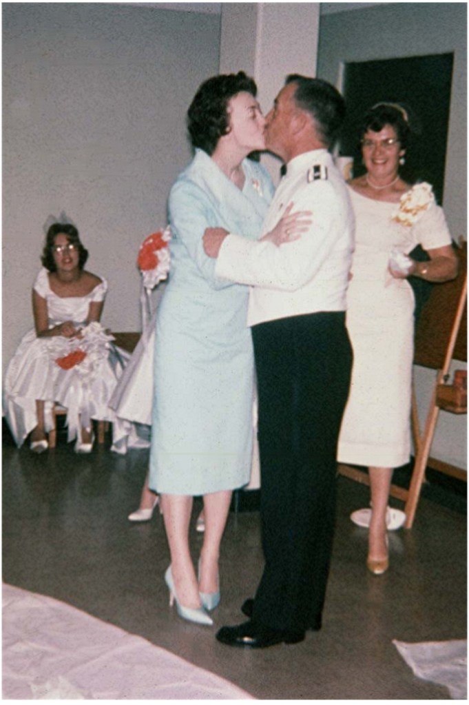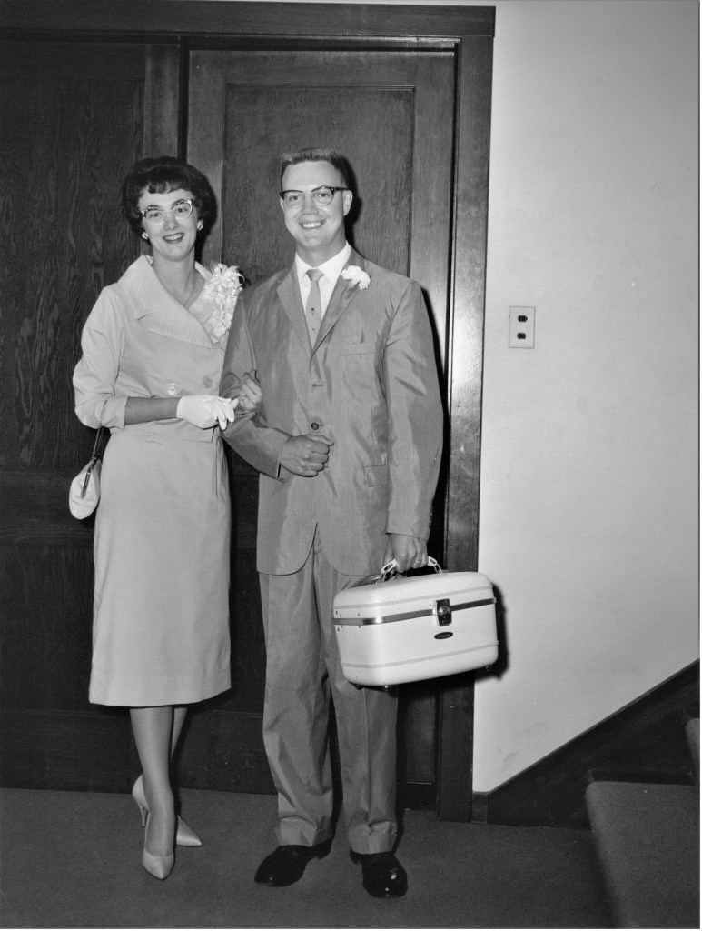 Here is a black-and-white picture of Fred and me as we were ready to leave the church. I regret now that we didn’t have those pictures done in color rather that black-and-white.