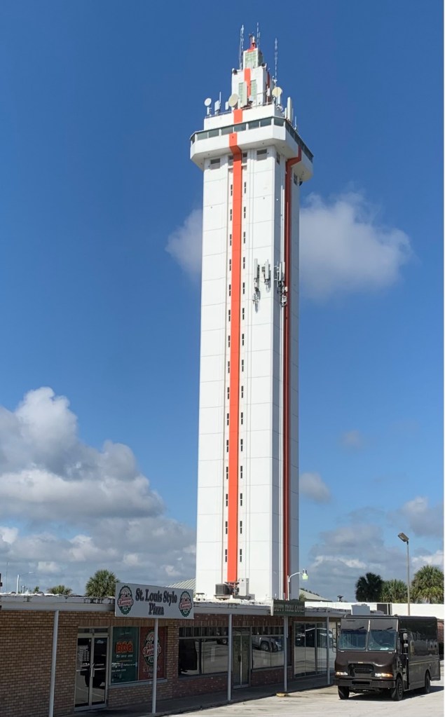 Next, I headed west another 15 miles on SR-50 to checkout the Citrus Tower in Clermont, FL. This famous Florida landmark was opened in 1956, and at the time, claimed to be the highest point in Florida (543 feet above sea level). The view from the observation deck allows a person to see 35 miles to the horizon (on a clear day) which includes 8 Florida counties and 2000 sq. miles of surrounding land. Back in that day all a person could see was orange groves, but today several winter freezes and Florida growth have turned most of that land into homes and businesses.