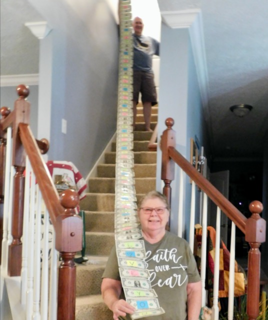 One of our friends made up this cool gift for my big 7-0. On each dollar bill she placed a Post-it note with a birthday message on it.