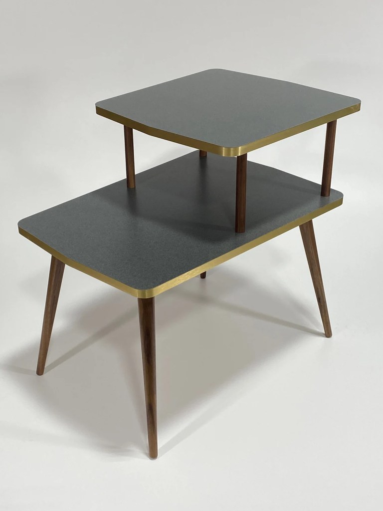 As my mom aged, I lent a hand with the housekeeping. One of the chores I found annoying was dusting their dual level end tables. I think when my parents passed to Glory, we donated them to a local charity. They are now called mid-century collectibles and I found this picture on Etsy. If you like mid-century, check out their store, this one is handmade! The picture below is a modern version.