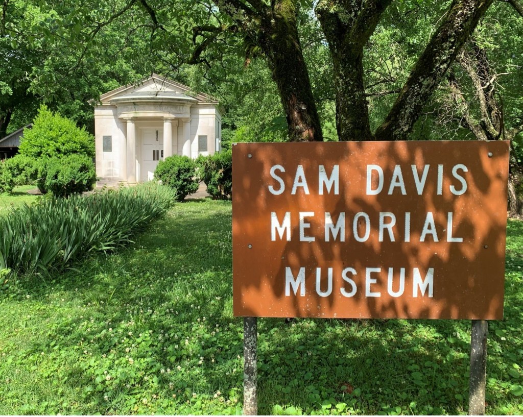 This morning after a quick breakfast, I said my goodbyes to my friends, Terry and Mary and headed north 25 miles on SR-29 & SR-166 to visit the Sam Davis Memorial Museum located across the border in Pulaski, TN. This Memorial Museum is a small mausoleum dedicated to Sam Davis, a young Confederate soldier, who was captured while carrying Union battle papers and hung as a spy on November 27, 1863, at this location. The museum was closed today this photo of the mausoleum was the only thing I had to remind me of my visit.