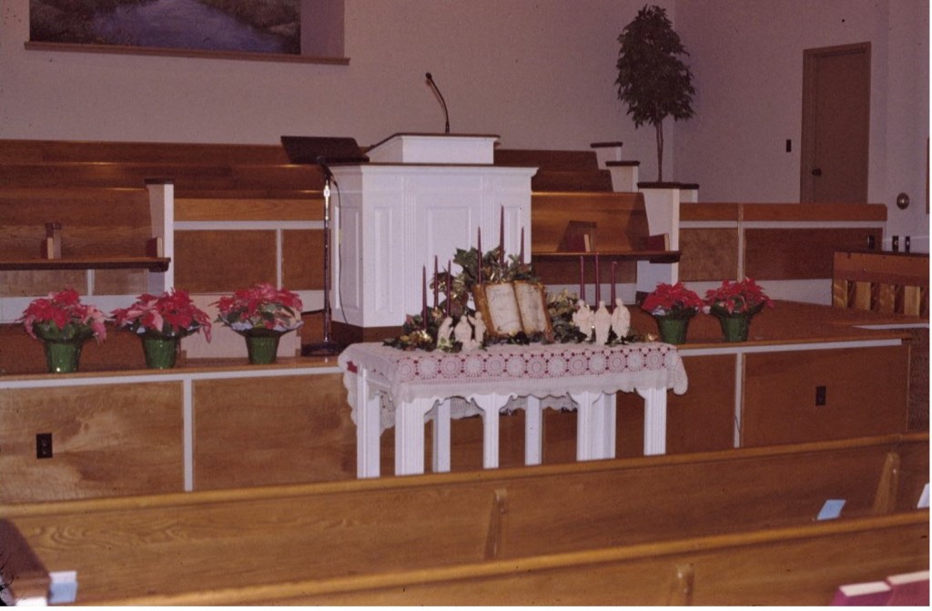 The far left end (pitched roof) was the original building, with the classrooms between it and the “new” Sanctuary with the steeple. That area was now church offices and some classrooms. The center section was still classrooms, and it was all attached to the “new” Sanctuary.