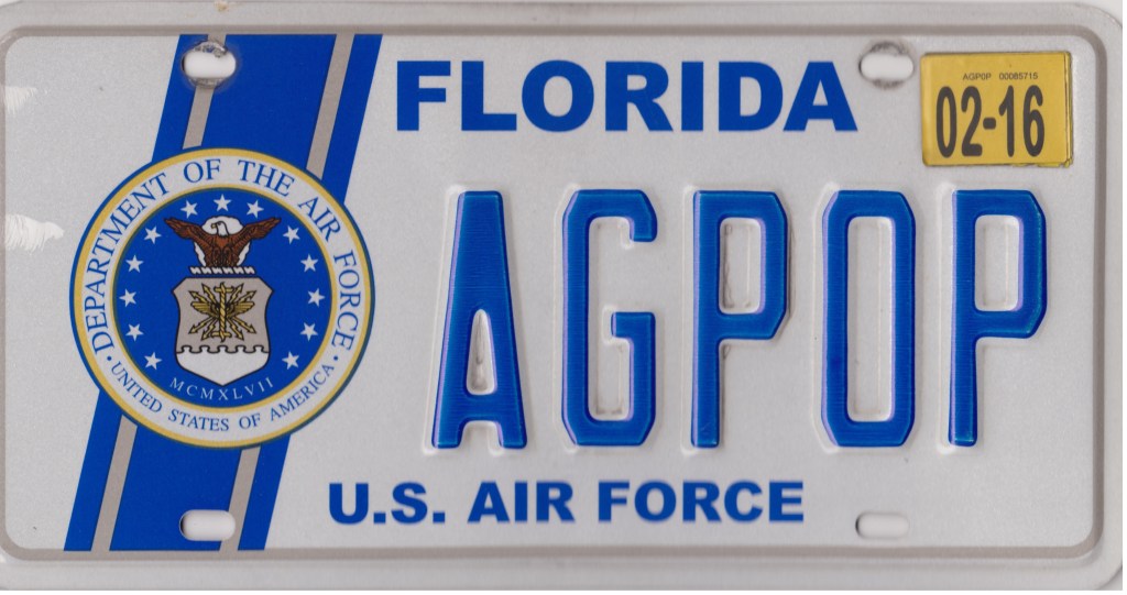 We had one Air Force license tag that said AGPOP.