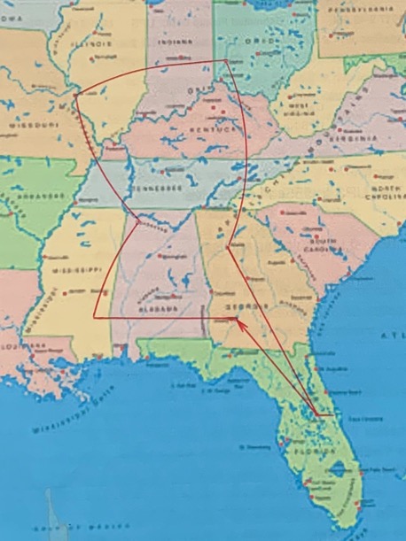 This year’s driving road trip is really a substitute for the trip to the northwestern U.S. & western Canada trip that I have had planned, but have had to postpone, for two years now because of Covid. I hope the Canadian tourist restrictions for Americans entering into their country will be lifted by next year so I can visit that part of northwest America and parts of western Canada. The main motivations for this road trip were to visit friends in Lester, AL and to visit The Arch in St. Louis. I missed a visit to The Arch last time I was in St. Louis because of Arch construction, and I really wanted to visit that Iconic structure. The other motivation for this trip was a visit the Museum of Transportation, also in St. Louis, the Lane Motor Museum in Nashville, TN and The Ark Encounter in Williamstown, KY. I have been told by many friends The Ark Encounter is a must-see attraction. The map below will give you an idea of the approximate route I have laid out for myself during this road trip.