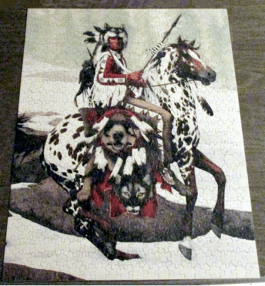 So it was a bit of a surprise to find that Karen and Brian gave us the Bev Doolittle puzzle! As I said, it held three different pictures, one was fairly small – only 100 pieces. (can you find the Indian in the picture?)