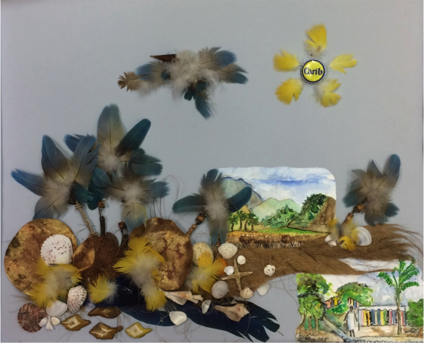 Epilog: My creative artist wife, DiVoran, took many of the souvenirs we collected, during our trip to St. Kitts, and arranged them in a beautiful collage that hangs in our studio to continually remind us of our one and only ‘Caribbean Island Adventure’ all those many years ago.
