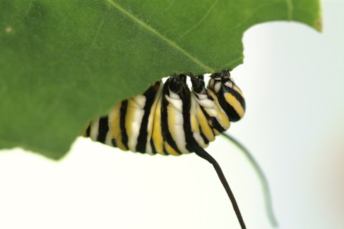 There are several kinds, but the most common is the tropical milkweed. It is not native or the best one, but it’s rare to find the swamp milkweed which is native. One advantage of the Tropical is that you can grow it from seeds or preferably cuttings. You will need a lot of it. The caterpillar is a voracious eater, capable of consumming an entire leaf in less than five minutes. They gain about 2700 times their own weight.