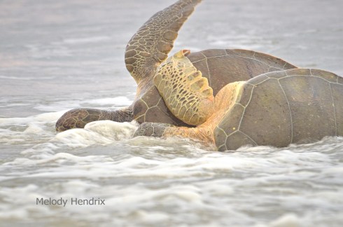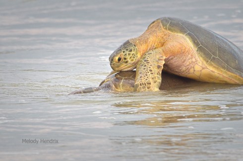 One morning I went to our lovely beach in Titusville, Playalinda beach before sunrise. I was hoping for a nice sunrise picture, but I also kept my eye on possible sea turtle activity. I was disappointed I had not seen any turtles laying eggs on the beach. As I walked along checking turtle markers, I saw something in the surf. I thought it was debris being tossed by the waves. I got closer and to my delight, it was two green sea turtles mating. They were so focused they didn’t notice me for some time. They didn’t realize they were so close to shore. I just clicked away, my heart pounding and I could hardly contain my excitement. They usually mate underwater, but I was so blessed to experience them right before me, something so rare. I wish them well for the rest of their season and hope there are lots of little ones to populate our ocean.