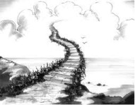 When I was about four years old, I lived with my family in Crowley, Colorado, and I played with a little boy next door almost every day. One day when I was going over to his house I saw that the sidewalk continued and became a stairway. My friend’s mother was walking up it away from me. I called out to her, but she didn’t turn around. Sometime in the next day or so Mother told me the lady had died and I thought without emotion of any kind, “Oh, she was going to Heaven.” That’s absolutely all I can tell you except that I have never in my life had a doubt that Heaven exists and that I’m going there. Of course, since then I have been grateful to have an opportunity to take the step, which would guarantee it. When looking for a picture for this blog I saw something like the stairway again. I suppose someone else has seen it too.