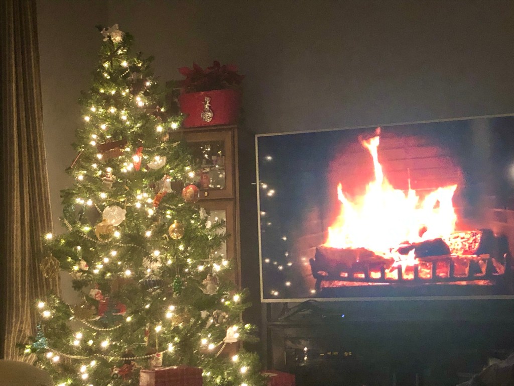 After our supper, (The soup was yummy) we relaxed with soft Christmas music and our TV fireplace. (Don’t judge LOL)