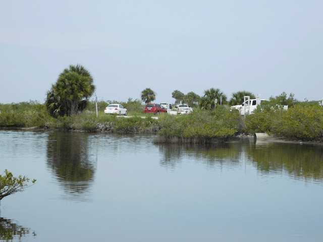 Peacock’s Pocket road ended at the Indian River with a wide turn around area. Several people were fishing and one family complete with a dog had set up a canopy for shade and were hanging out together.