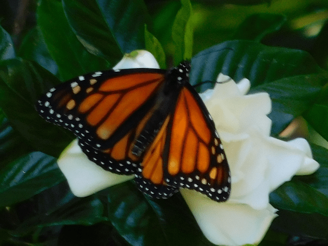 Rebekah’s gardenia bush is blooming and was visited as well.