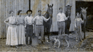 Notice the shovel my great-grandfather had. He must have been a funny man. Our grandfather is the fifth from the left. To me,he resembles Prince Charles.