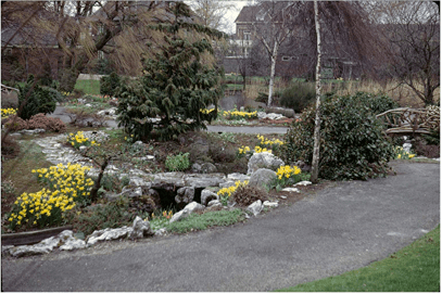 Because it was April, many of the flowers that grew outside (rather than in the hothouses) and the trees were not in full bloom yet.