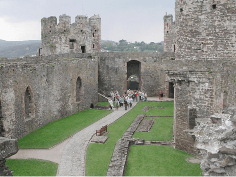 Unlike Harlech however, Conwy Castle and town are surrounded by a well-preserved wall lending an additional sense of strength to the site. Conwy’s well-preserved wall helps the town maintain a medieval character lost by other Welsh castle-towns over the years. Construction of Conwy began in 1283. The castle was an important part of King Edward I’s plan of surrounding Wales in “an iron ring of castles” to subdue the rebellious population. The highly defensible wall Edward built around the town was intended to protect the English colony planted at Conwy. The native Welsh population were violently opposed to English occupation of their homeland.