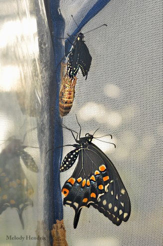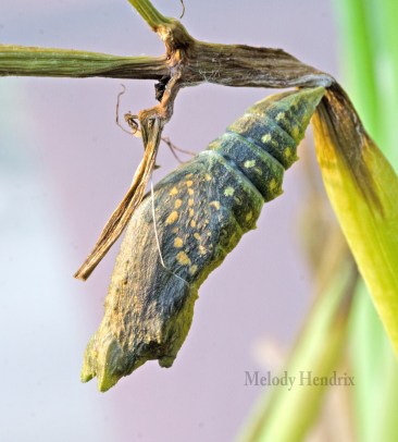 It’s chrysalis is much different than the monarch. You can see the butterfly colors through it the day before it emerges.