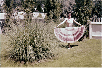 Here’s a picture of Janet and a dress I made for her when she was in high school. As I recall, it was made out of polyester fabric.