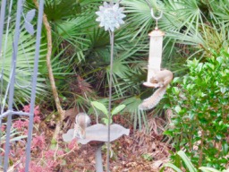 Sure enough, as I sipped my morning coffee, I saw not one but three squirrels. One was on the feeder, one on the bird bath and one on the ground. I didn’t capture the one on the ground as he scampered when he saw me.